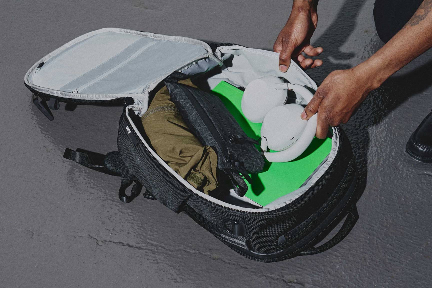• Lay-flat main compartment for easy packing