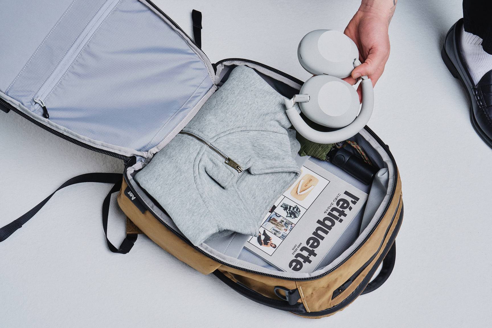 • Lay-flat main compartment for easy packing